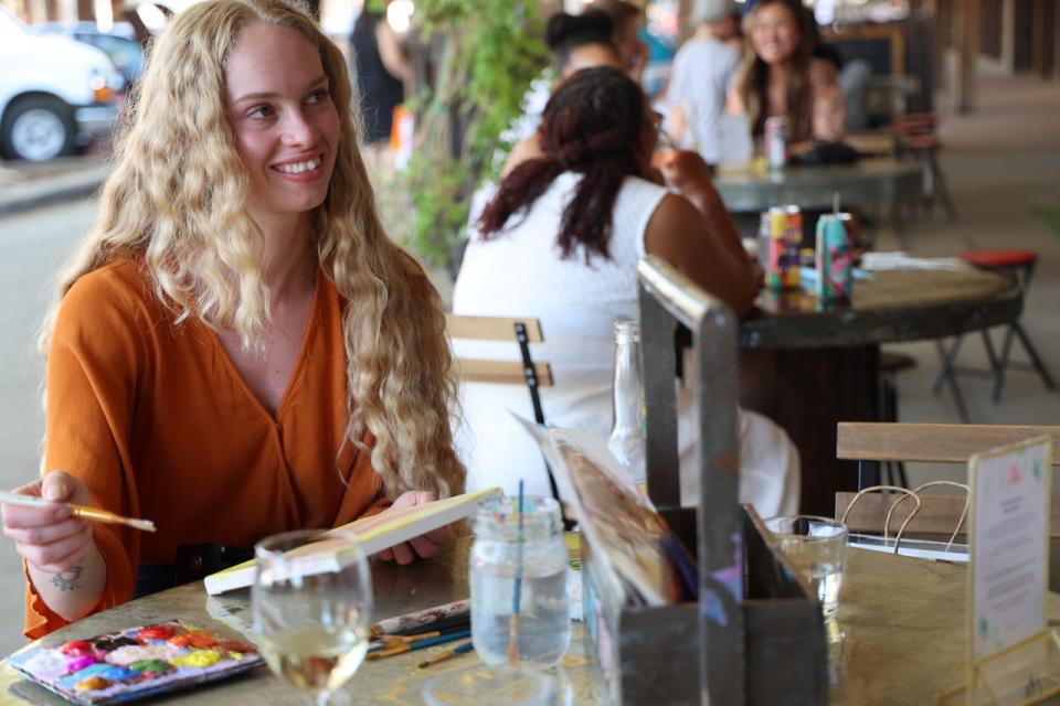 A sustainable and creative experience for the whole family. Play the baby grand piano, chill out at the upcycled garden tables. The kind and welcoming staff will serve you art supplies on a golden platter. Order a cold and refreshing kombucha to sip as they serve you canvas, paints, brushes, stencils, clay and all the help you need to make your masterpiece. They’ll be on hand to guide you through the experience well as change out your water and refresh your paint colors for a gourmet art experience.