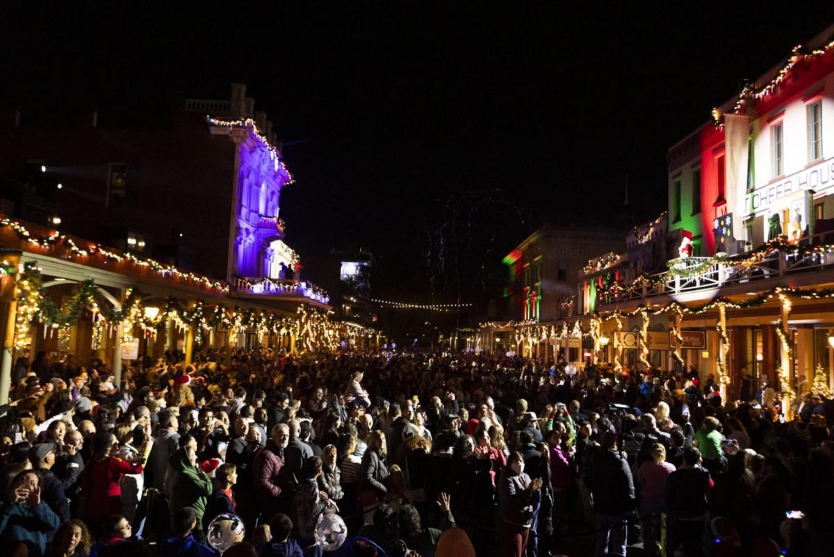 The performance features an immersive retelling of Moore’s 1823 poem — “A Visit from St. Nicholas,” more popularly known as “Twas the Night Before Christmas” alongside stories of how Sacramento pioneers experienced the calamities — and revelry — that befell the new city in the 1850s. The sounds of the fires, floods, and parties will surround the audience as the 150-year-old building facades light up with color. The highlight of the 20-minute production is a live dramatization on the balconies above K Street, complete with a special appearance by Jack Frost, and the lighting of the 60-foot Christmas tree by St. Nick himself.