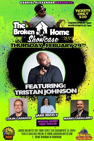 The Broken Home Showcase – Live Comedy Laughs Unlimited Comedy Club Post February 29, 2024 - 7:00pm - 8:30pm Featuring Tristan Johnson Special Guests Tess Tickles Also performing Colin Casados, Jake Rizzly, Mario Caballero
