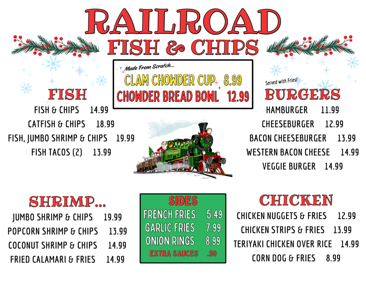 Railroad Fish & Chips is the go-to destination in Sacramento for hand-dipped fish & chips and homemade clam chowder!